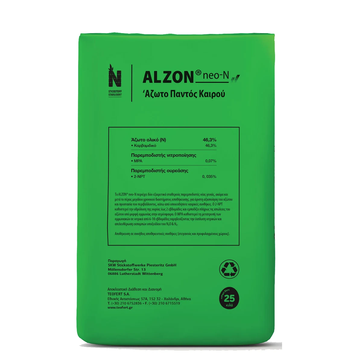 ALZON® neo-N je idealno rešenje za savremene poljoprivrednike koji žele povećanu efikasnost đubrenja, manje gubitke azota i dugoročno očuvanje plodnosti zemljišta. Dvostruka stabilizacija (ureaza + nitrifikacija) ga čini superiornijim u odnosu na klasičnu ureu.